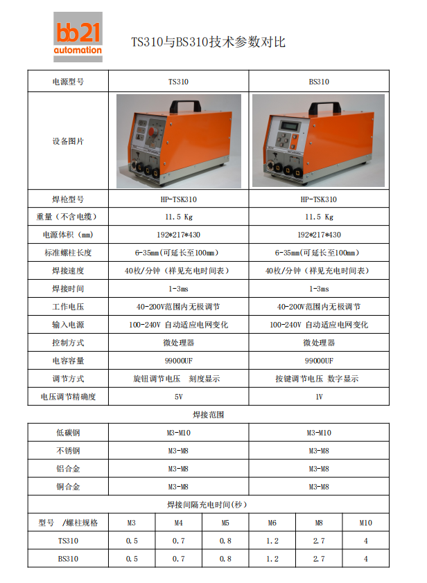 TS310與BS310技術(shù)參數(shù)對(duì)比
